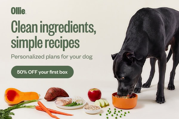 These meals are also designed with veterinary nutritionists and your meal plan will be customized to your specific dog, just answer a few questions at sign-up. This is a great middle-ground that’s a no-brainer and still with TONS of benefits. You can click the picture below and learn more (this is an affiliate link that will take you straight to Ollie):